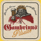 GAMBRINUS - der legendäre König des Bieres - Bierdeckel der Privat-Brauerei Heinrich Reissdorf, Köln